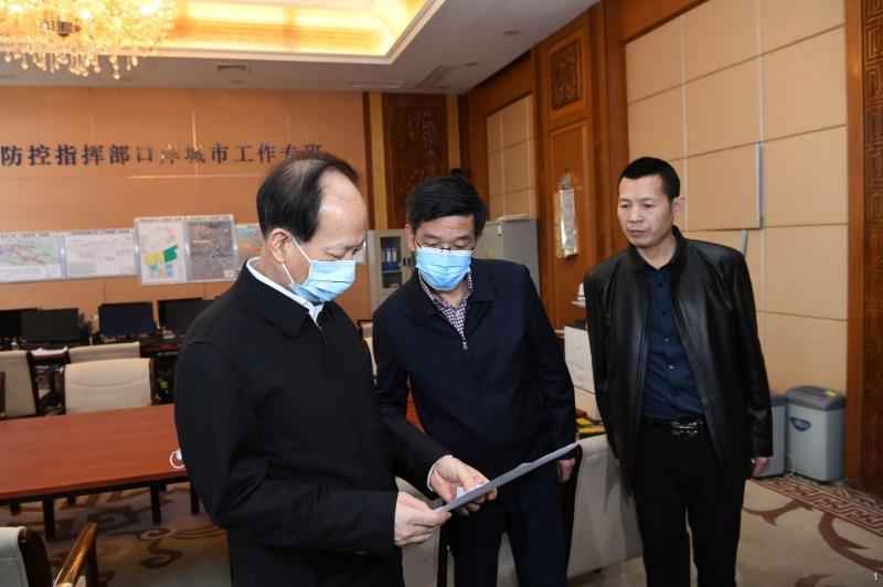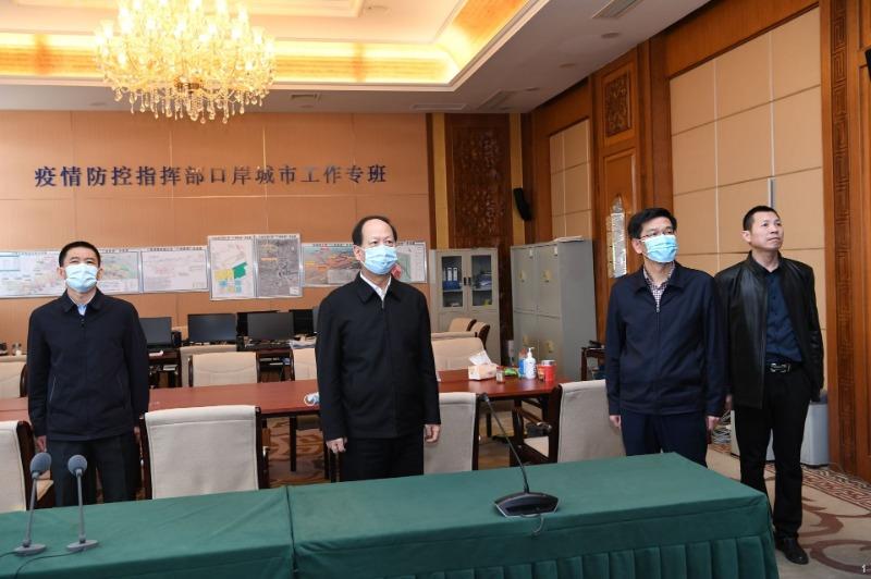 4月4日,自治区党委书记、人大常委会主任石泰峰暗访自治区新冠肺炎疫情防控指挥部口岸城市工作专班值守情况。内蒙古日报社融媒体记者袁永红摄