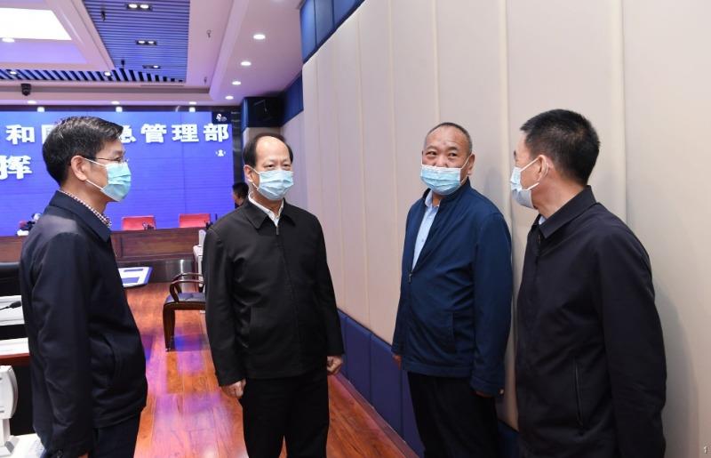 4月4日,自治区党委书记、人大常委会主任石泰峰暗访内蒙古自治区应急管理厅指挥中心值守情况。内蒙古日报社融媒体记者袁永红摄