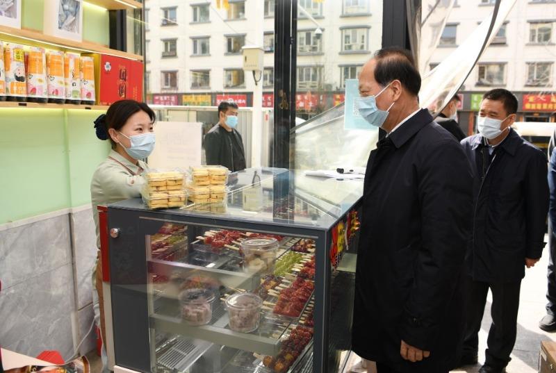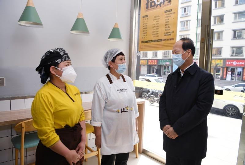 4月4日,自治区党委书记、人大常委会主任石泰峰来到呼和浩特市赛罕区讨号板街,暗访商铺经营和疫情防控情况。内蒙古日报社融媒体记者袁永红摄