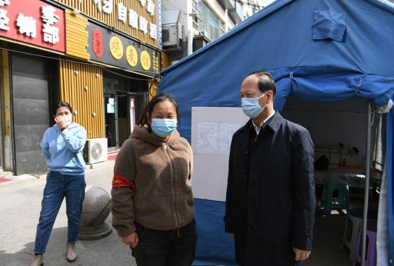 4月4日,自治区党委书记、人大常委会主任石泰峰来到呼和浩特市赛罕区讨号板新村,暗访疫情防控情况。内蒙古日报社融媒体记者袁永红摄