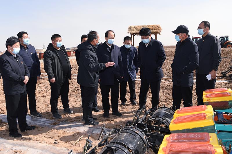 3月16日,自治区党委书记、人大常委会主任石泰峰来到巴彦淖尔市杭锦后旗二道桥镇,察看生产播种情况。内蒙古日报社融媒体记者袁永红摄