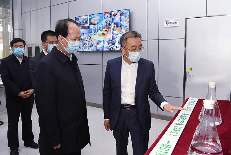3月17日,自治区党委书记、人大常委会主任石泰峰来到乌海高新技术产业开发区乌达产业园内蒙古兴发科技有限公司,了解项目进展情况。内蒙古日报社融媒体记者袁永红摄