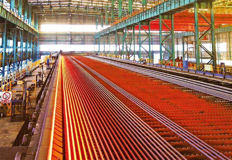 2021年11月24日,内蒙古兴安盟乌兰浩特钢铁有限责任公司研发的32毫米高强抗震大规格热轧带肋螺纹钢生产成功,刚下生产线的新产品就被客户抢购一空。图为11月25日工人们正在加紧生产。 求是图片 郑志宏/摄