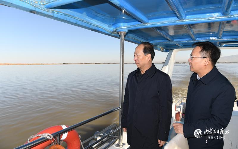 10月10日,自治区党委书记、人大常委会主任石泰峰来到乌海市乘船调研乌海湖生态保护情况。内蒙古日报社融媒体记者 袁永红 摄
