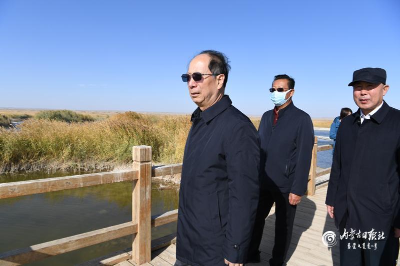 10月11日,自治区党委书记、人大常委会主任石泰峰来到阿拉善盟额济纳古居延泽生态保护区,查看生态保护情况。内蒙古日报社融媒体记者 袁永红 摄