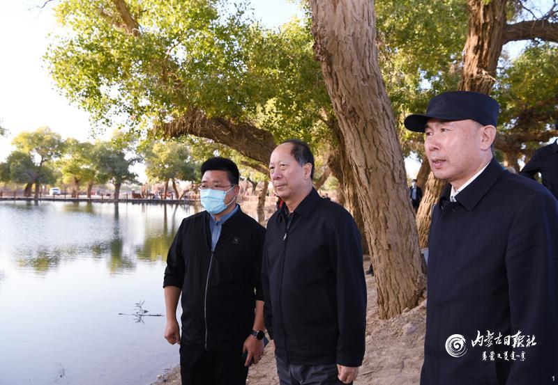 10月11日,自治区党委书记、人大常委会主任石泰峰来到阿拉善盟额济纳胡杨林国家级自然保护区,查看胡杨林自然保护区修复情况。内蒙古日报社融媒体记者 袁永红 摄