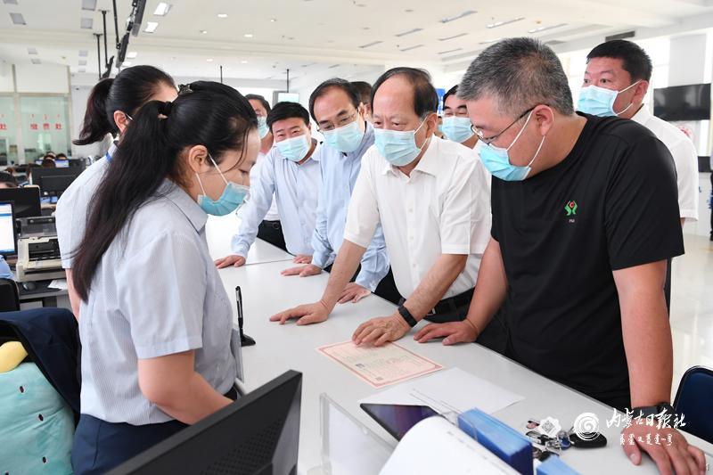 9月1日,自治区党委书记、人大常委会主任石泰峰来到赤峰市翁牛特旗政务服务中心,了解便民、快捷服务和优化政务环境情况。内蒙古日报社融媒体记者 袁永红 摄
