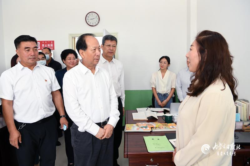 8月31日,自治区党委书记、人大常委会主任石泰峰深入通辽市科尔沁区莫力庙苏木民族学校,了解推行使用国家统编教材工作情况。内蒙古日报社融媒体记者 袁永红 摄