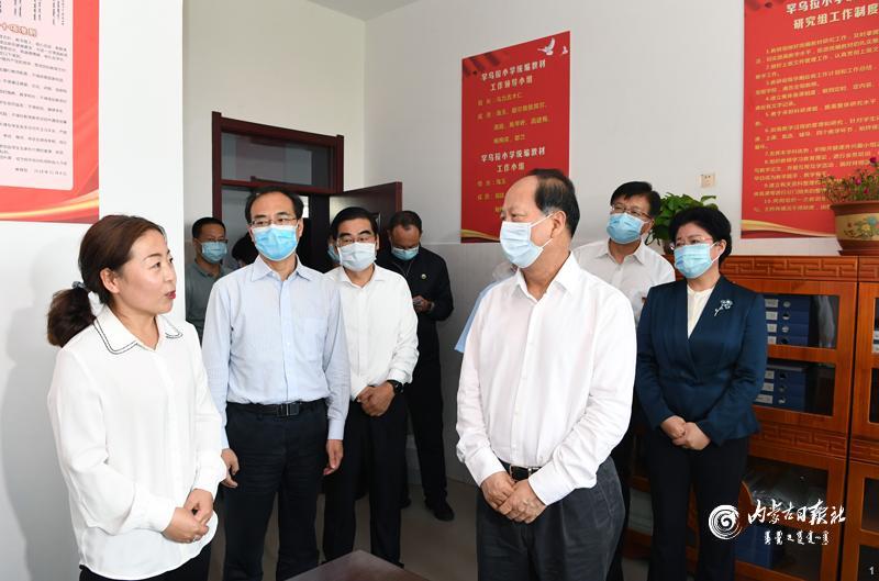 8月31日,自治区党委书记、人大常委会主任石泰峰来到赤峰市阿鲁科尔沁旗罕乌拉小学,了解推行使用国家统编教材情况。内蒙古日报社融媒体记者 袁永红 摄