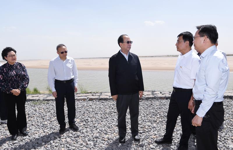 6月8日,自治区党委书记、人大常委会主任石泰峰来到乌海市海勃湾区,查看黄河海勃湾段岸线防护情况。(摄影 袁永红)