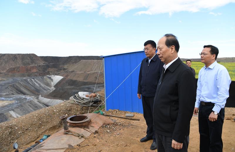 石泰峰高度关注矿区环境整治状况,实地考察了乌海能源公司路天煤矿地质环境恢复治理工程和原旧洞沟排渣场自燃火点治理项目实施情况。