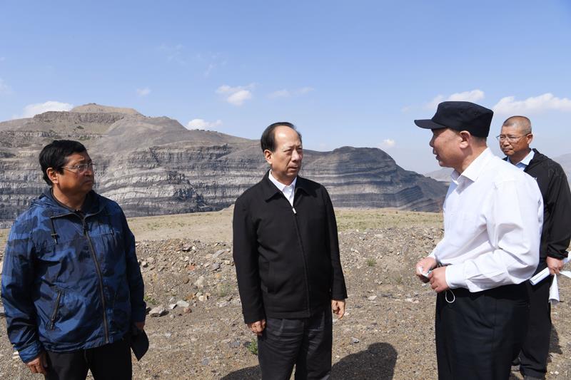 6月9日,自治区党委书记、人大常委会主任石泰峰来到内蒙古阿拉善左旗宏力公司大岭煤矿采空区综合治理项目调研。(摄影 袁永红)