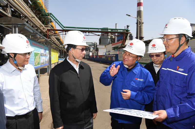 6月8日,自治区党委书记、人大常委会主任石泰峰来到乌海市海南工业园区西来峰项目区,听取国家能源集团煤焦化有限责任公司挥发性有机物治理项目介绍。(摄影 袁永红)