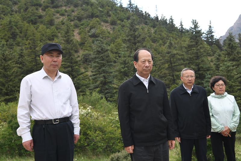 6月9日,自治区党委书记、人大常委会主任石泰峰来到内蒙古贺兰山国家级自然保护区雪岭子地区,了解生态修复情况。(摄影 袁永红)