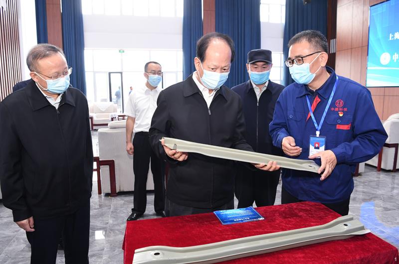 6月9日,自治区党委书记、人大常委会主任石泰峰来到阿拉善盟阿拉善高新技术产业开发区巴音敖包工业园内蒙古中盛科技有限公司,了解企业项目建设和科技研发情况。(摄影 袁永红)