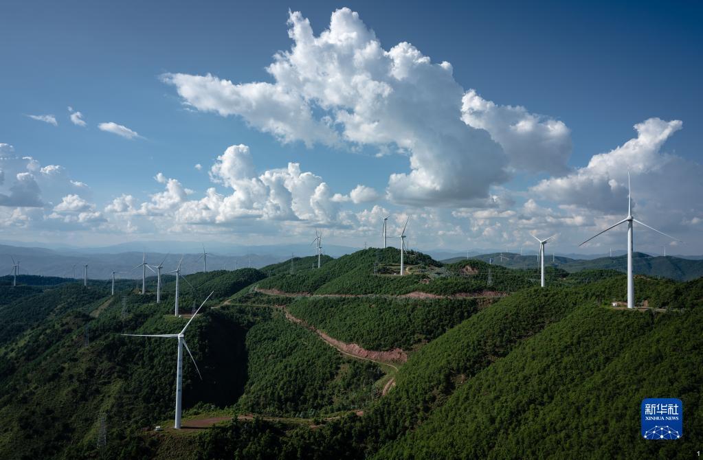 这是2022年8月18日在云南省楚雄彝族自治州姚安县内拍摄的风力发电机。新华社记者 王冠森 摄
