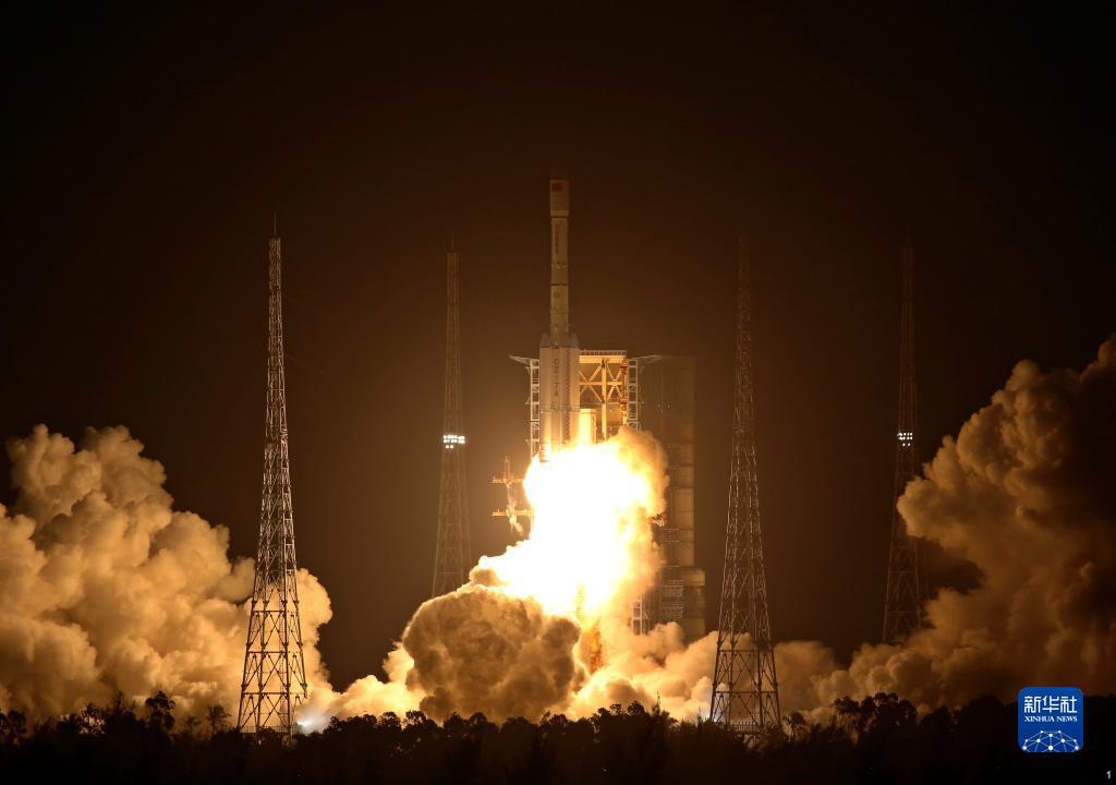 2021年12月23日18时12分,我国在文昌发射场用长征七号改运载火箭,成功将试验十二号卫星01星、02星发射升空。卫星顺利进入预定轨道,发射任务获得圆满成功。新华社发(胡煦劼 摄)