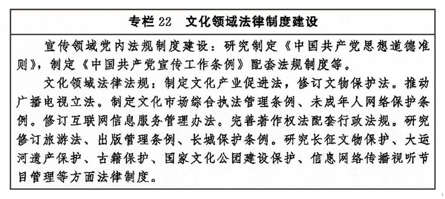 ——中国特色社会主义文化制度更加完善,文化法律法规体系和政策体系更加健全,文化治理效能进一步提升。