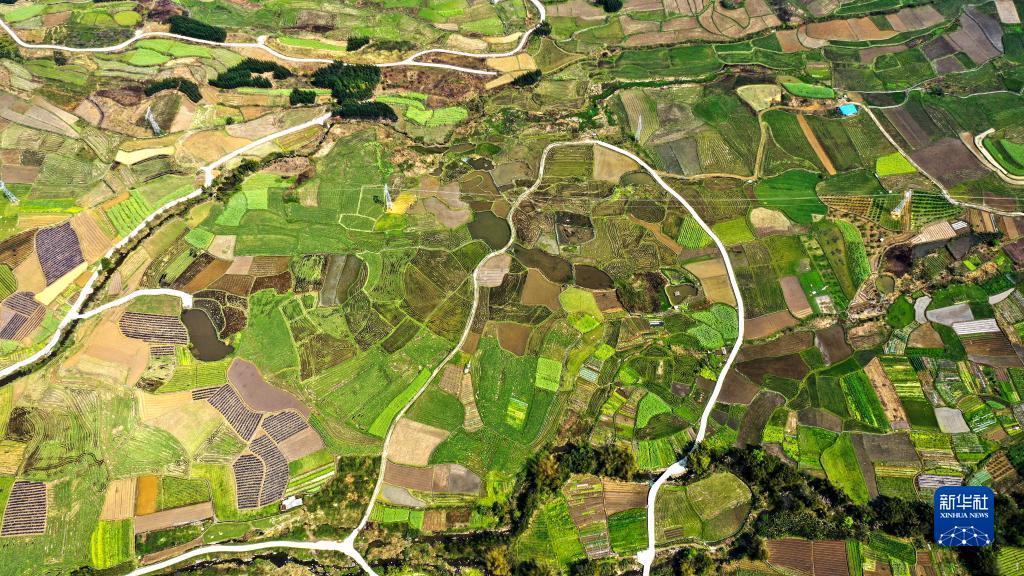 广西融安县潭头乡新桂村的春耕田园景色(3月17日摄,无人机照片)。新华社记者 张爱林 摄