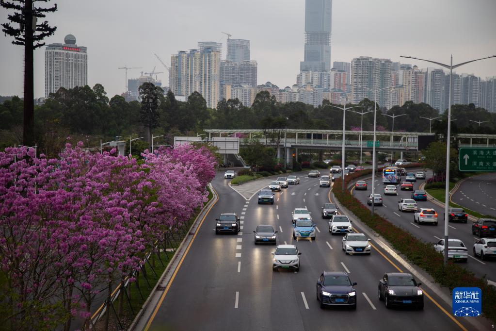 这是3月21日在深圳沙河西路拍摄的车流。新华社发(刘羽洁 摄)