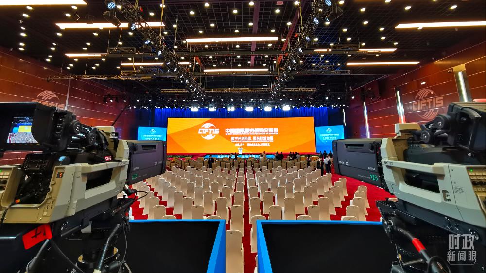△服贸会全球服务贸易峰会开始前的会场。(总台央视记者王志明拍摄)