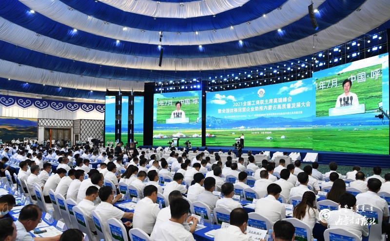 7月20日,2021全国工商联主席高端峰会暨全国优强民营企业助推内蒙古高质量发展大会在呼和浩特举办。(摄影 袁永红)