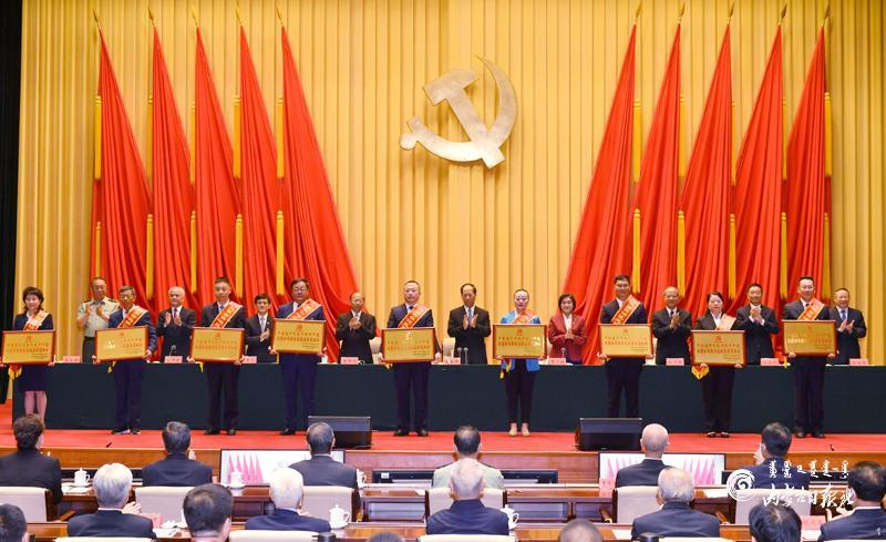 6月29日上午,出席大会的自治区领导为受表彰的先进基层党组织代表颁发奖牌。(摄影 马建荃)