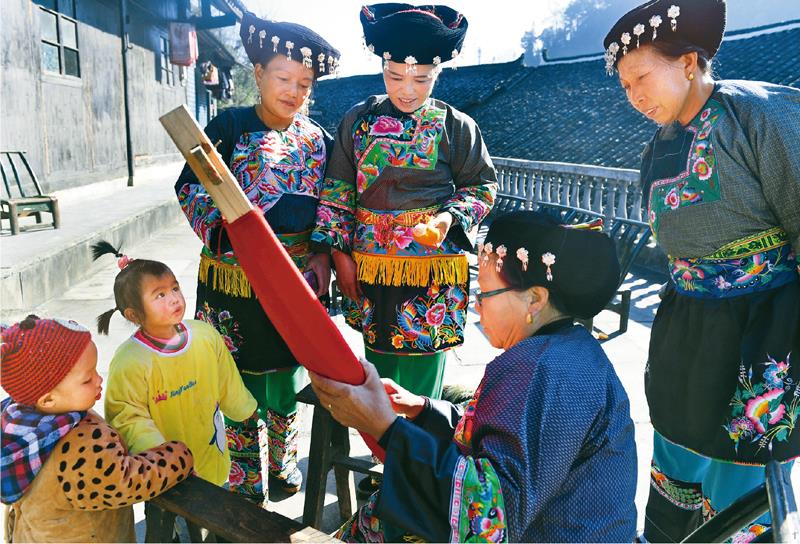 2016年10月,湖南省湘西州花垣县十八洞村党支部带领村里的妇女“绣”出好日子。 中共中央组织部供图