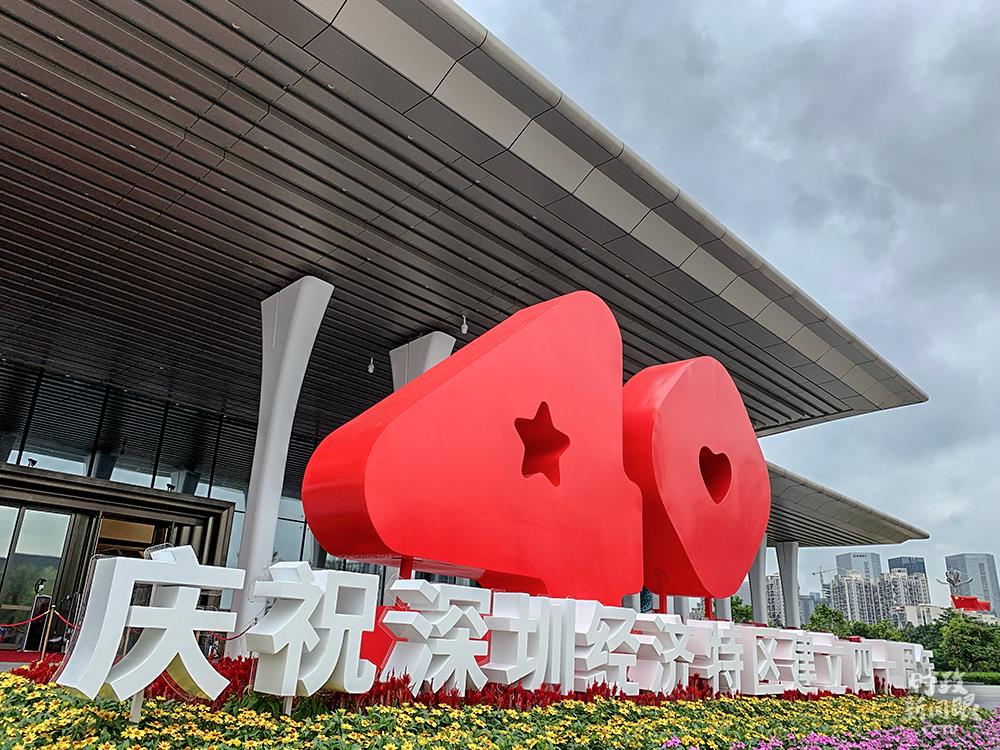 “40”是庆祝大会当天最醒目、设计最独特的数字。4里面是一颗五角星,取自五星红旗,0里面是一颗爱心,这个标识的名字叫做“星心相映”,寓意着深圳是一颗明日之星,也是一座爱心之城。(总台央视记者程铖拍摄)