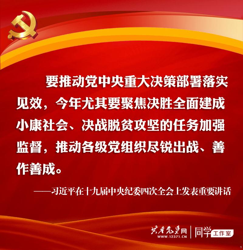 习近平总书记在十九届中央纪委四次全会上发表重要讲话。讲话深刻总结新时代全面从严治党的历史性成就,深刻阐释我们党实现自我革命的成功道路、有效制度,深刻回答管党治党必须“坚持和巩固什么、完善和发展什么”的重大问题,对以全面从严治党新成效推进国家治理体系和治理能力现代化作出战略部署。