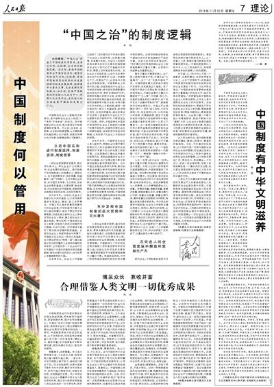 改革开放以来特别是党的十八大以来,我国经济持续健康发展,社会既充满活力又和谐有序,“中国之治”有力证明了中国制度科学管用。那么,中国制度科学管用的深层次原因是什么?习近平同志指出,要坚持从国情出发、从实际出发,既要把握长期形成的历史传承,又要把握走过的发展道路、积累的政治经验、形成的政治原则,还要把握现实要求、着眼解决现实问题,不能割断历史,不能想象突然就搬来一座政治制度上的“飞来峰”。中国制度之所以科学管用,是基于合实际、合规律、合目的的制度逻辑,源于深厚的历史文化滋养,得益于合理借鉴人类文明一切优秀成果。本版几篇文章对此进行探讨。