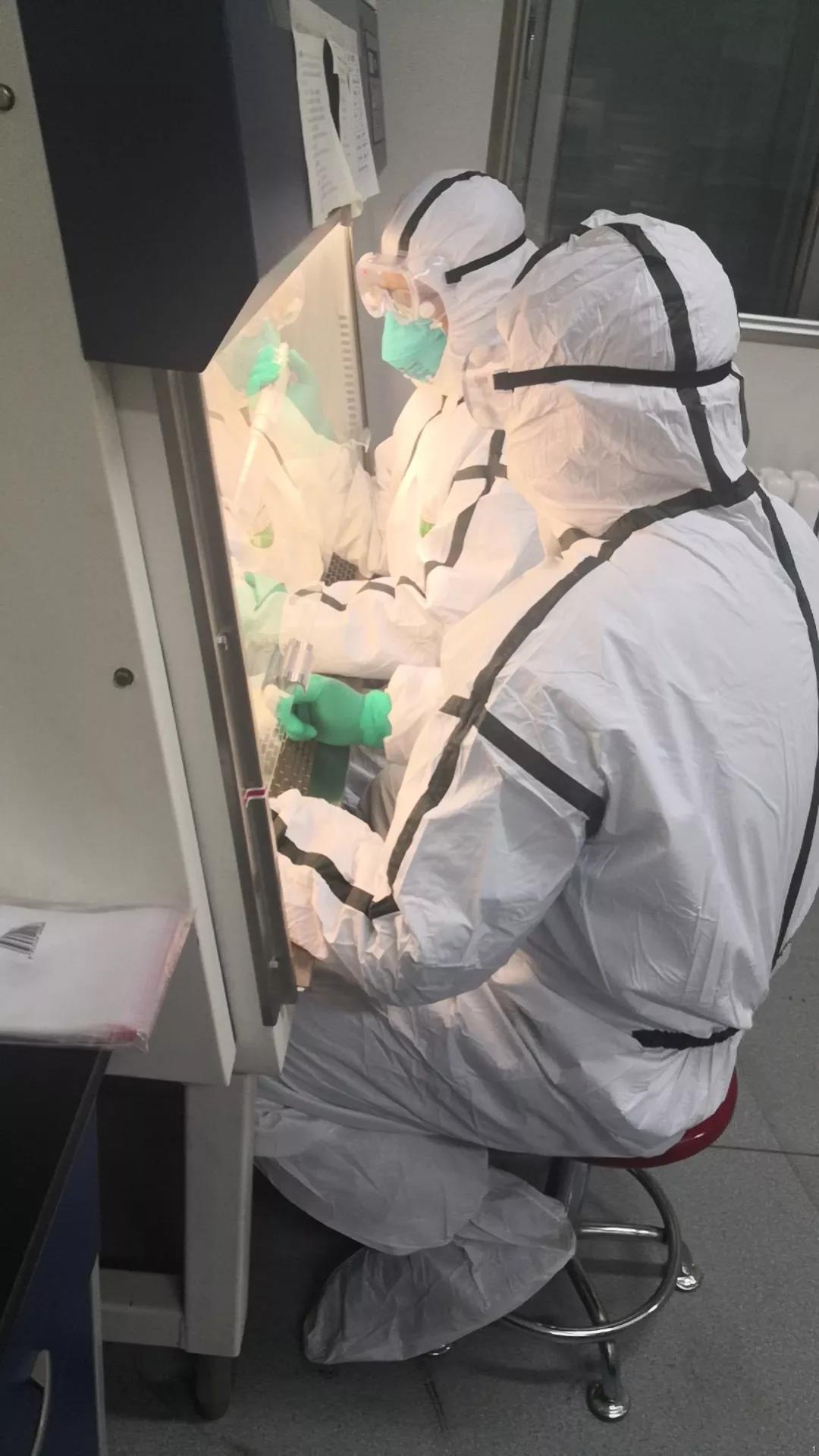除夕夜,在人们吃年夜饭、看春晚、发祝福、抢红包的时候,市疾控中心微检科两位年轻的共产党员班慧和赵紫东坚守在密不透风的PCR实验室里,争分夺秒地进行新型冠状病毒核酸检测。检测六个主要步骤中,前五个都要手工操作,身着双层防护的生物安全三级防护服,在不到10分钟的时间里,两人已经浑身湿透了,防护眼罩内都是蒸汽和汗水。在这样的环境中,他们需要连续工作4个多小时才能检测出结果。